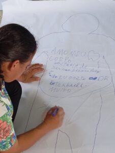 A saúde mental também é uma frente de trabalho relevante. Com as oficinas “Corpo-Território”, voltadas para mulheres quilombolas, o projeto busca compreender o corpo como expressão da terra e o território como parte inseparável do bem viver. “Essas atividades permitem discutir e elaborar, de forma coletiva, aspectos do sofrimento e do cuidado que muitas vezes não são verbalizados, mas que fazem parte da experiência de vida e da saúde nos quilombos”, explica Flora. Em paralelo, também são promovidos ateliês de geração de renda, articulando bem-estar, autonomia econômica e sustentabilidade.