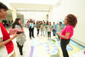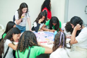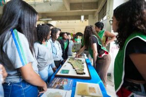 Stephanie destacou ainda a exposição produzida por alunas do projeto Mentoria nas Escolas, de Baldim (MG), e o jogo Corrente do Saber – Desvendando a Cultura Oceânica, criado especialmente para o evento. “As meninas vieram ver a exposição que elas mesmas fizeram, e o jogo foi desenvolvido com base no tema da Semana Nacional de Ciência e Tecnologia e nos Objetivos do Desenvolvimento Sustentável. As escolas têm participado ativamente, e os estudantes estão se divertindo muito com as atividades”, completou.