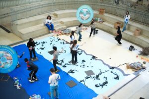Uma das atrações foi a instalação O rio que nos atravessa, que convidava o público a percorrer três tempos simbólicos do curso de um rio: o passado, o presente e o futuro. No primeiro trecho, as nascentes e os rios preservados lembravam o tempo anterior à degradação ambiental. No segundo, o curso d’água aparecia canalizado e poluído, um retrato da urbanização. E, por fim, o visitante era levado a refletir sobre um futuro possível em que o rio, mesmo ferido, segue vivo, evocando saberes ancestrais e práticas sustentáveis.