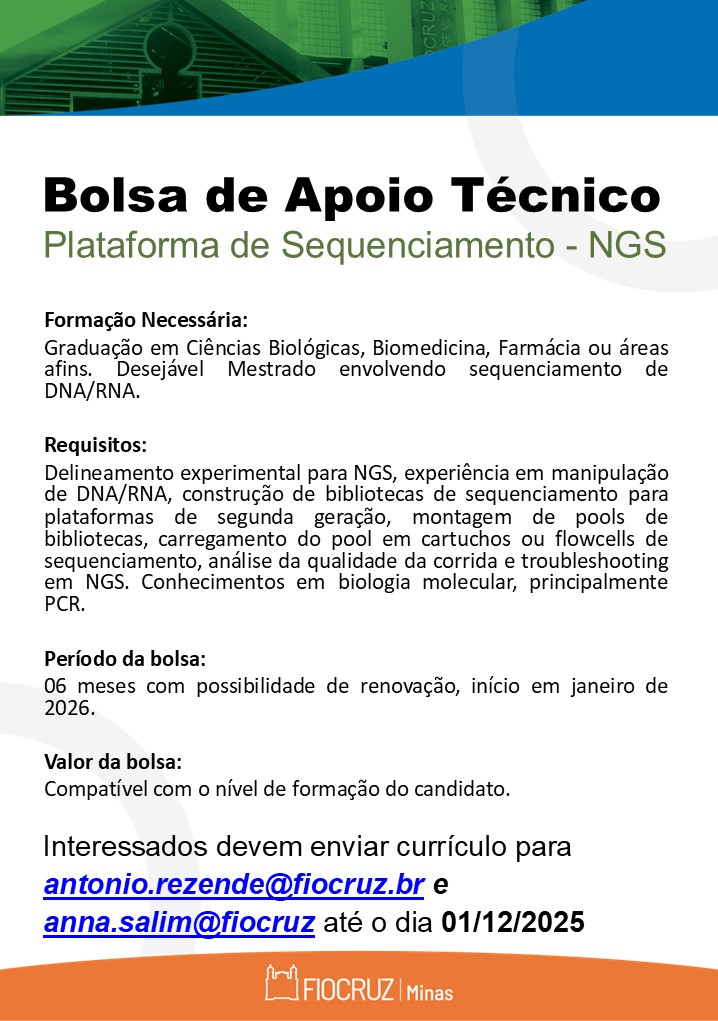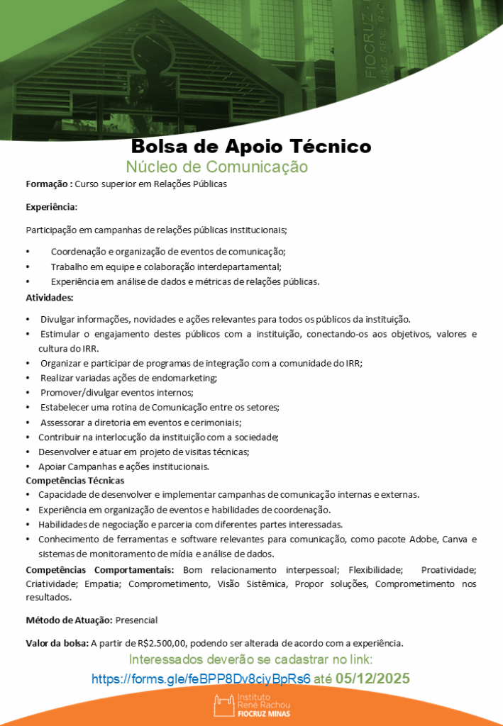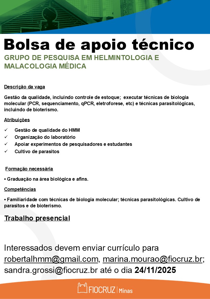 – Para mais informações sobre nossos concursos, acesse o site da Diretoria de Recursos Humanos (www.direh.fiocruz.br)